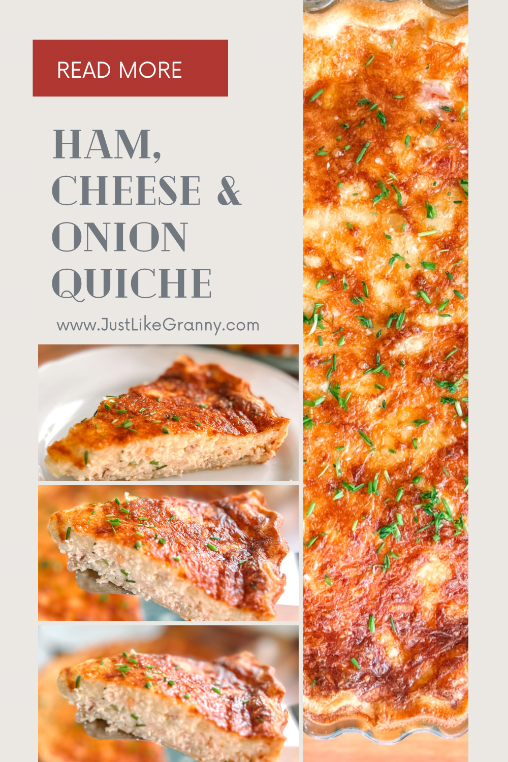 Description: This delectable quiche blends the savory flavors of ham, sweet onion, and a duo of cheddar and parmesan cheese, all brought together with a sprinkle of fresh chives. Ideal for breakfast, brunch, or a comforting dinner.