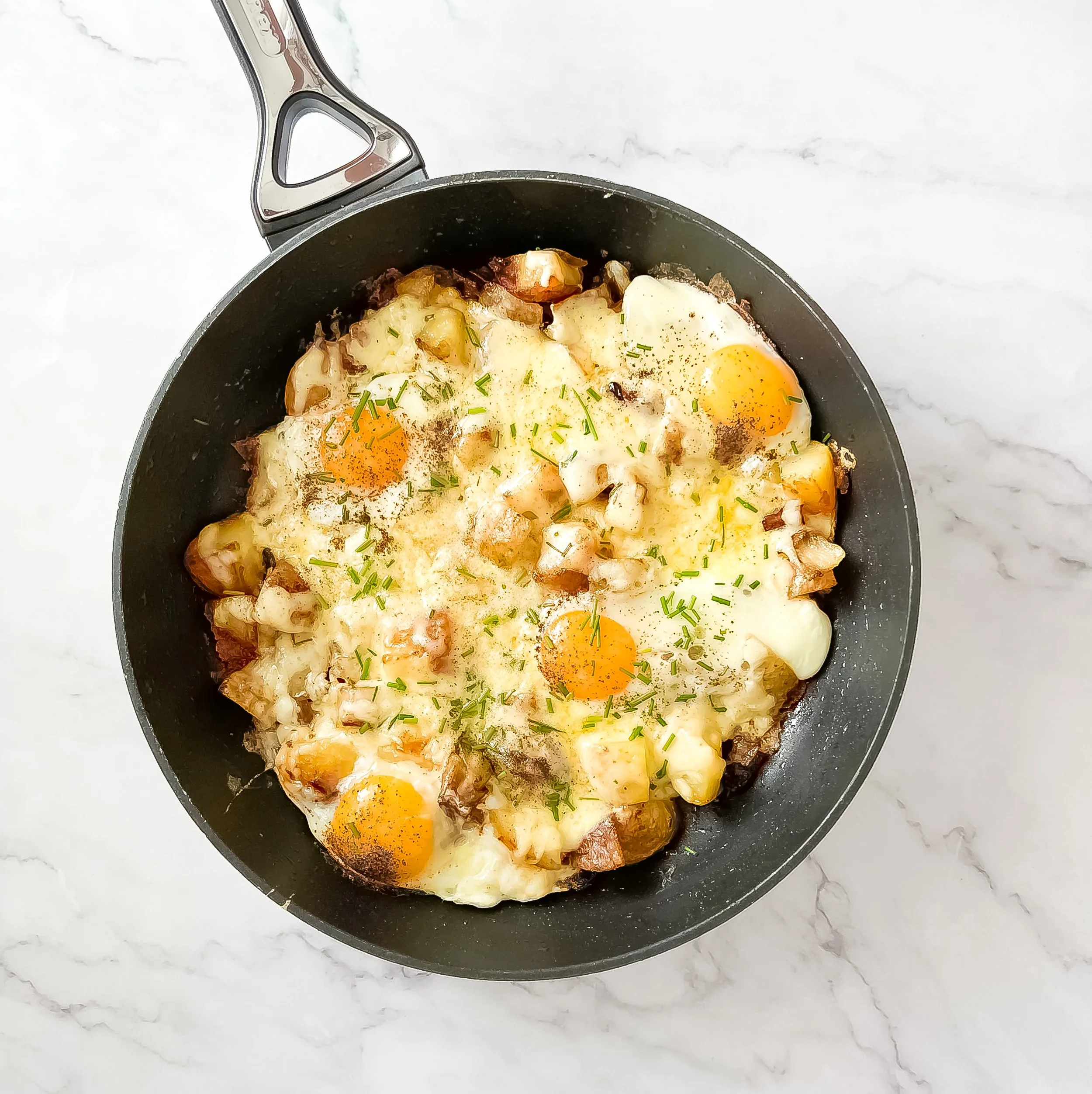 Description: A hearty and satisfying skillet dish perfect for breakfast or brunch. The crispy potatoes, melted cheddar, and perfectly cooked eggs make this a family favorite.